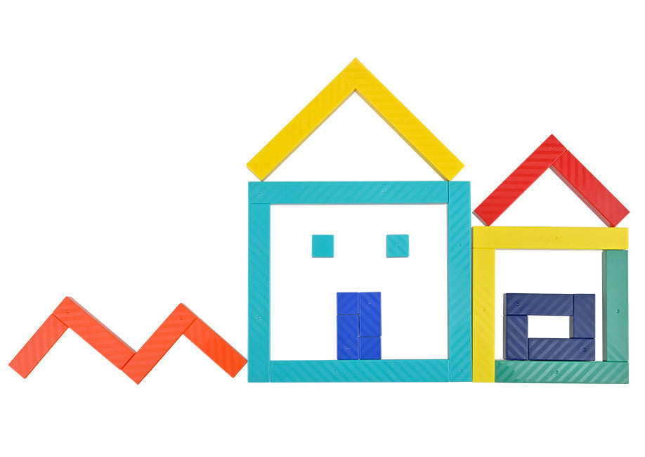 V BLOX is an exploration in creativity and building fun for the entire family. Stack, nest, and balance the V-shaped blocks to create an unbelievable variety of patterns and shapes. The idea booklet shows 29 examples of easy to challenging patterns and shapes to get started. Younger builders can start with 2-D patterns on a flat surface and then progress to upright 3-D configurations. Create your own structures with endless possibilities. Includes 18 V-shape blocks in 9 different sizes & 9 different colors, 10 V-cut pedestal blocks, and idea booklet.